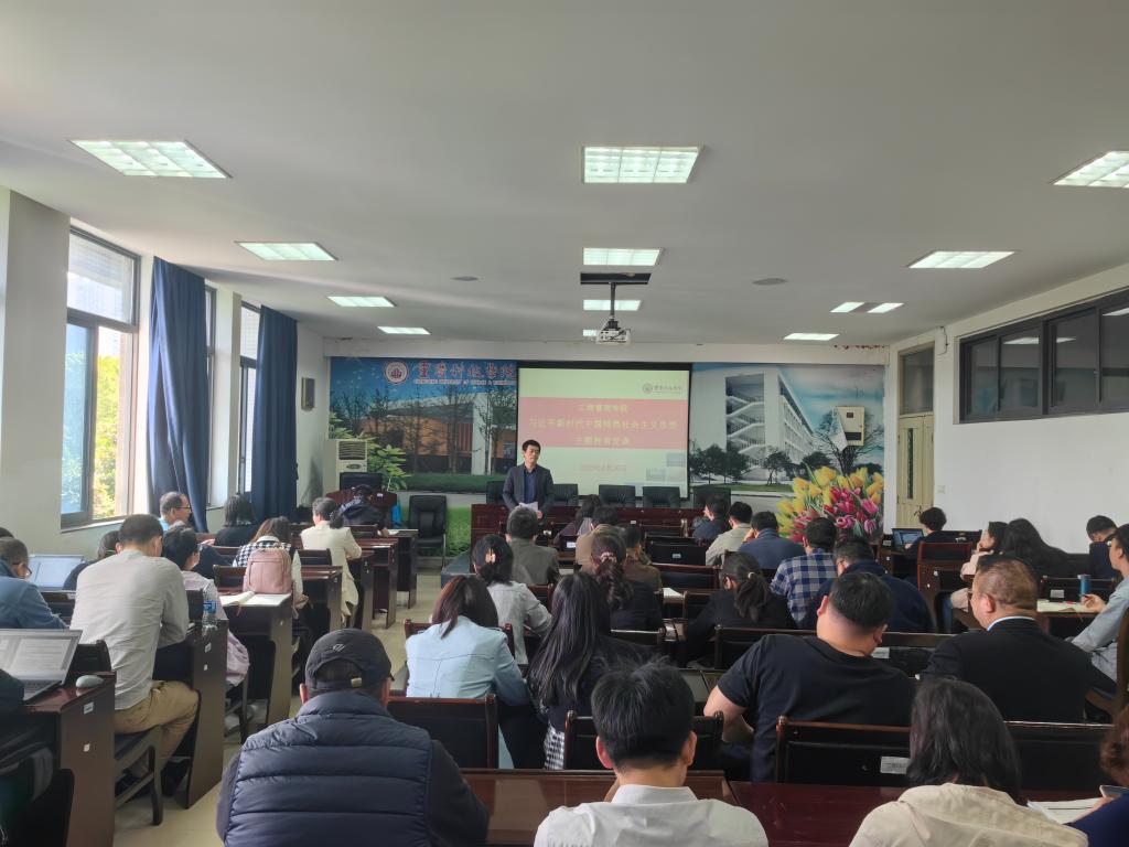 李旭东围绕“学思想、强党性、重实践、建新功”主题教育的任务,以深刻把握中国式现代化理论,求真务实,高质量推动学院内涵建设为主题,讲解了学习贯彻习近平新时代中国特色社会主义思想的意义和目的,并详细讲解了学校发展规划和学院建设任务。