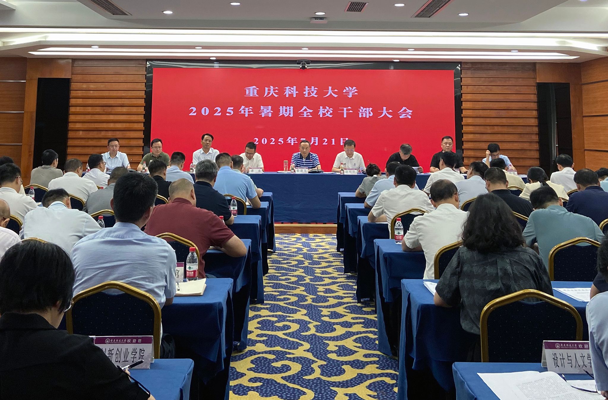7月21日上午,学校2025年暑期干部专题会在办公楼105会议室召开。全体在校校领导,机关教辅部门主要负责人,二级学院(部)党政主要负责人,安科公司主要负责人参加会议。会议由学校党委书记黎德龙主持。