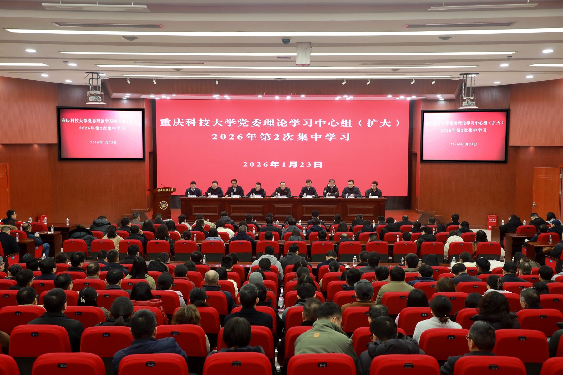 1月23日上午,学校在学术报告厅召开党委理论学习中心组(扩大)2026年第2次集中学习会。会议聚焦“深入学习贯彻习近平总书记重要论述和重要讲话精神,统筹发展和安全,以更高水平安全、更严实作风护航‘十五五’开局之年高质量发展”主题开展学习。学校党委理论学习中心组成员,科级以上干部(含组织员、纪检员、巡察专员),科室负责人参加学习。党委书记黎德龙主持会议并作总结讲话。